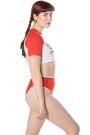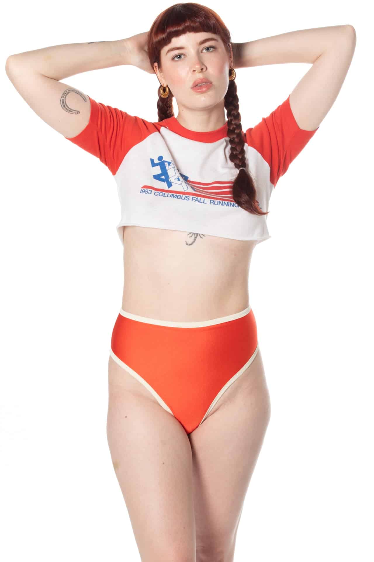 Ready to ship swim bottoms in our vintage inspired summer red with cream trim. Complete with a high waisted cut and adjustable waist fit.