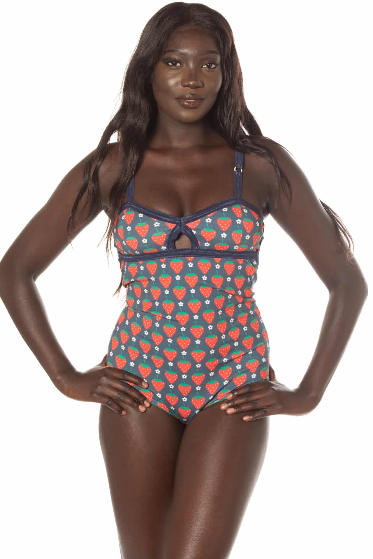 The classic cut bodysuit in our softest ribbed and printed cottons. The bralette top has a soft cup with mesh lining and fully adjustable shoulder and back straps.