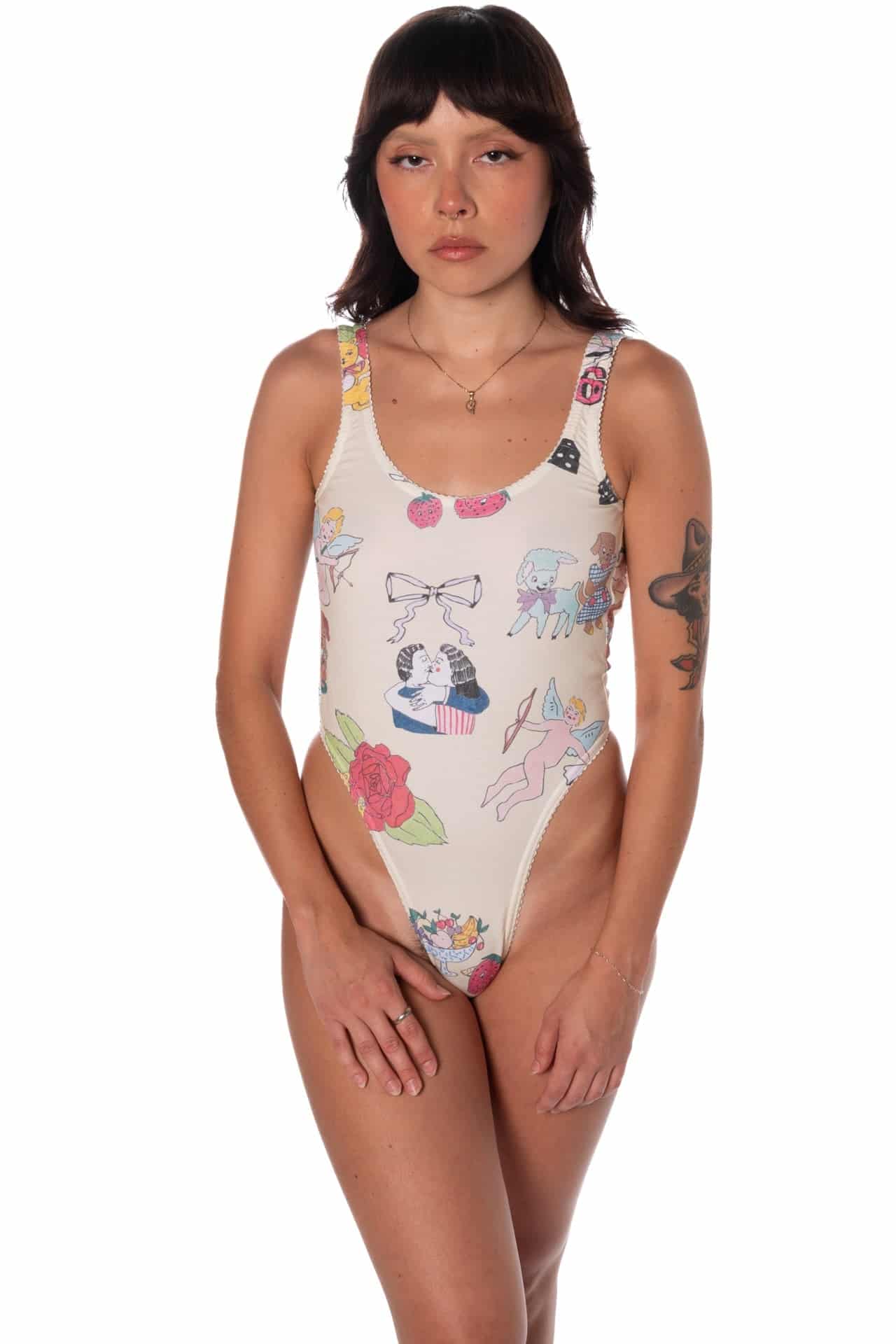Cotton Scoop Neck Thong Bodysuit