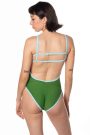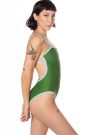 Ready to ship!!! One-piece swimsuit features cheeky cut leg-holes in a moss green swim fabric with blue trim. Swimsuits are fully lined.