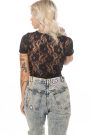 Our baby tee in our sexy stretch lace fabric. Featuring short sleeves and a lace trim neckline