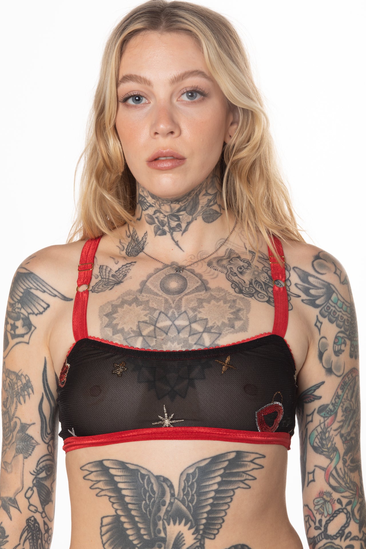 The bralette has a soft cup with a mesh lining with natural support in our sheer solid and printed stretch mesh. Featuring fully adjustable X-crossed back straps.