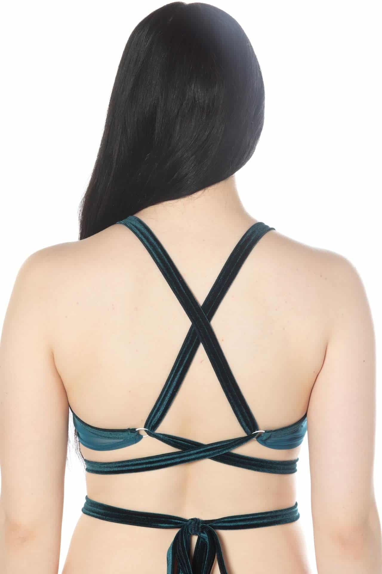 High-neck ballet inspired tie top in our sheer stretch MESH. Top has long velvet ties that cross in the back and can tie in the front or back.