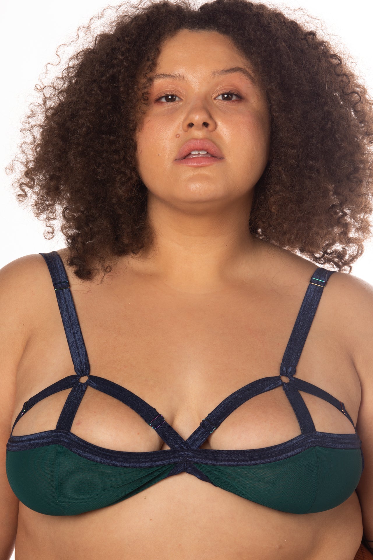 Experience flirty comfort with this Mesh v-strap bralette. Its gentle, stretch mesh fabric cups offer natural support while the adjustable v-straps provide a perfect fit. You’ll never want to take it off!