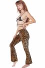 Tight-fitting flared trousers in a smooth leopard patterned plush. With a sensual burgundy picot edge waistband.