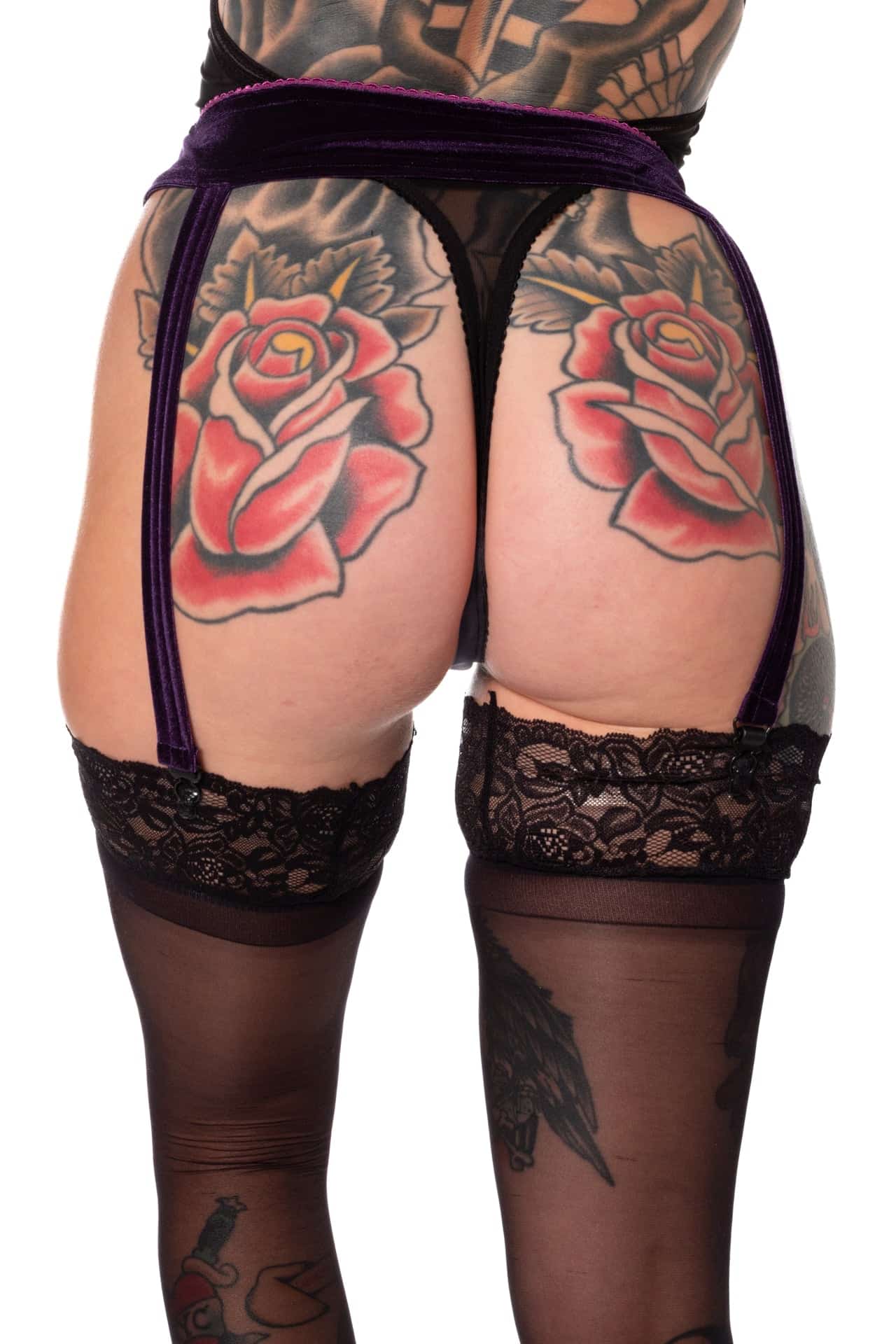 This garter belt is crafted from our softest stretch velvet, both solid and printed. It showcases garter clips that allow for easy attachment to stockings or thigh-high socks.