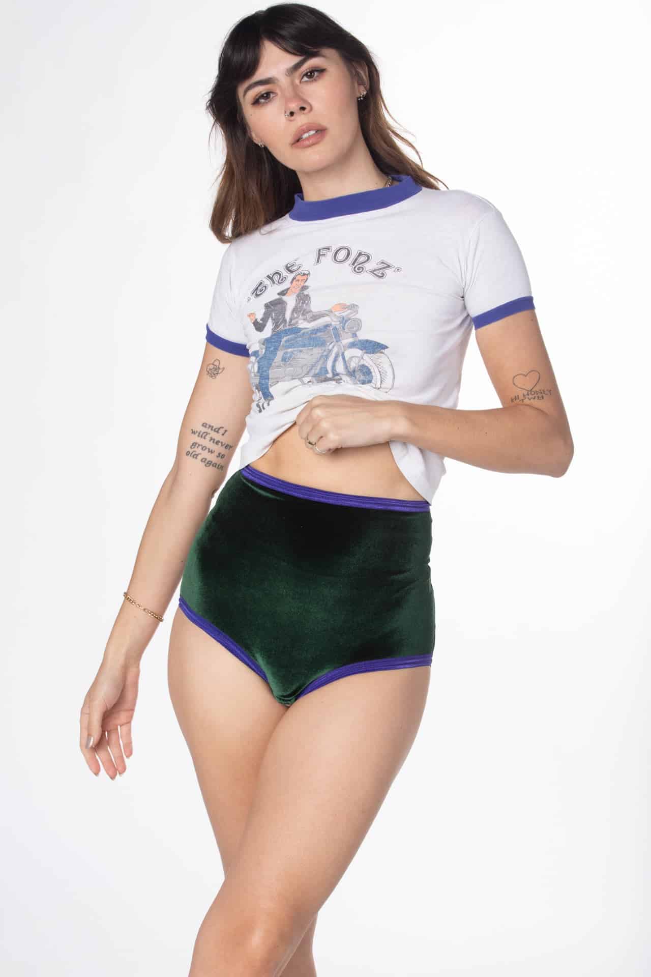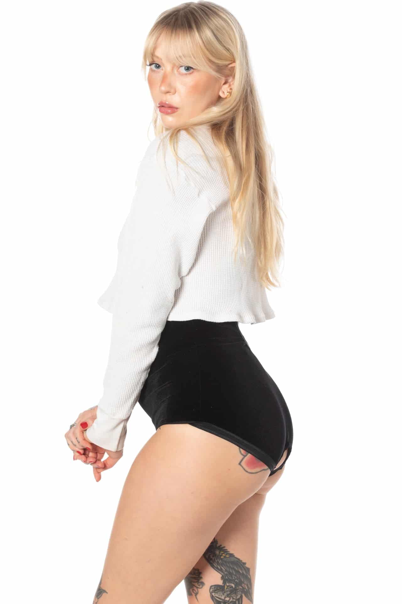 Super cute, comfortable, and flattering! I love the soft velvet, the cutout detail at the back, and the adjustable waist.