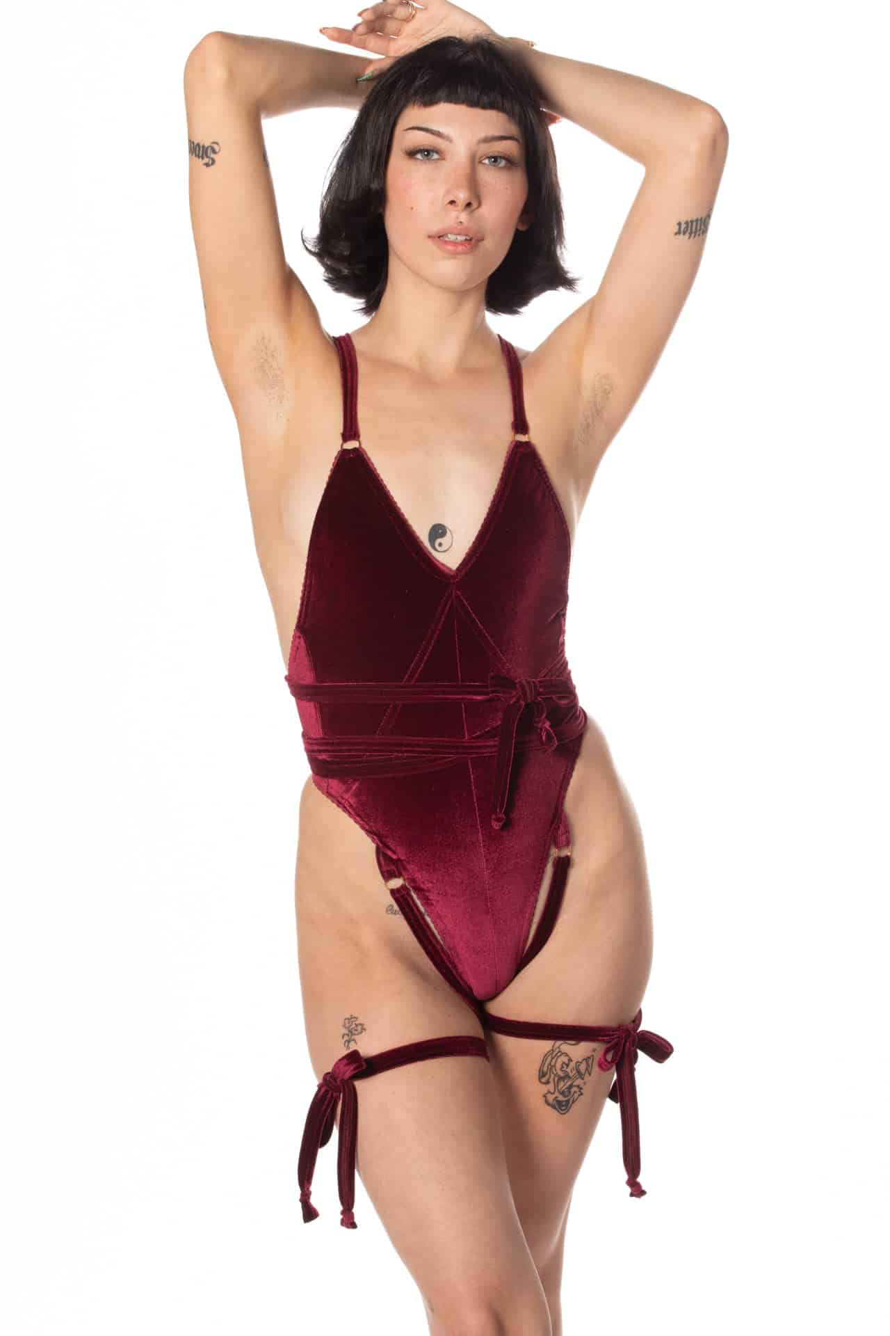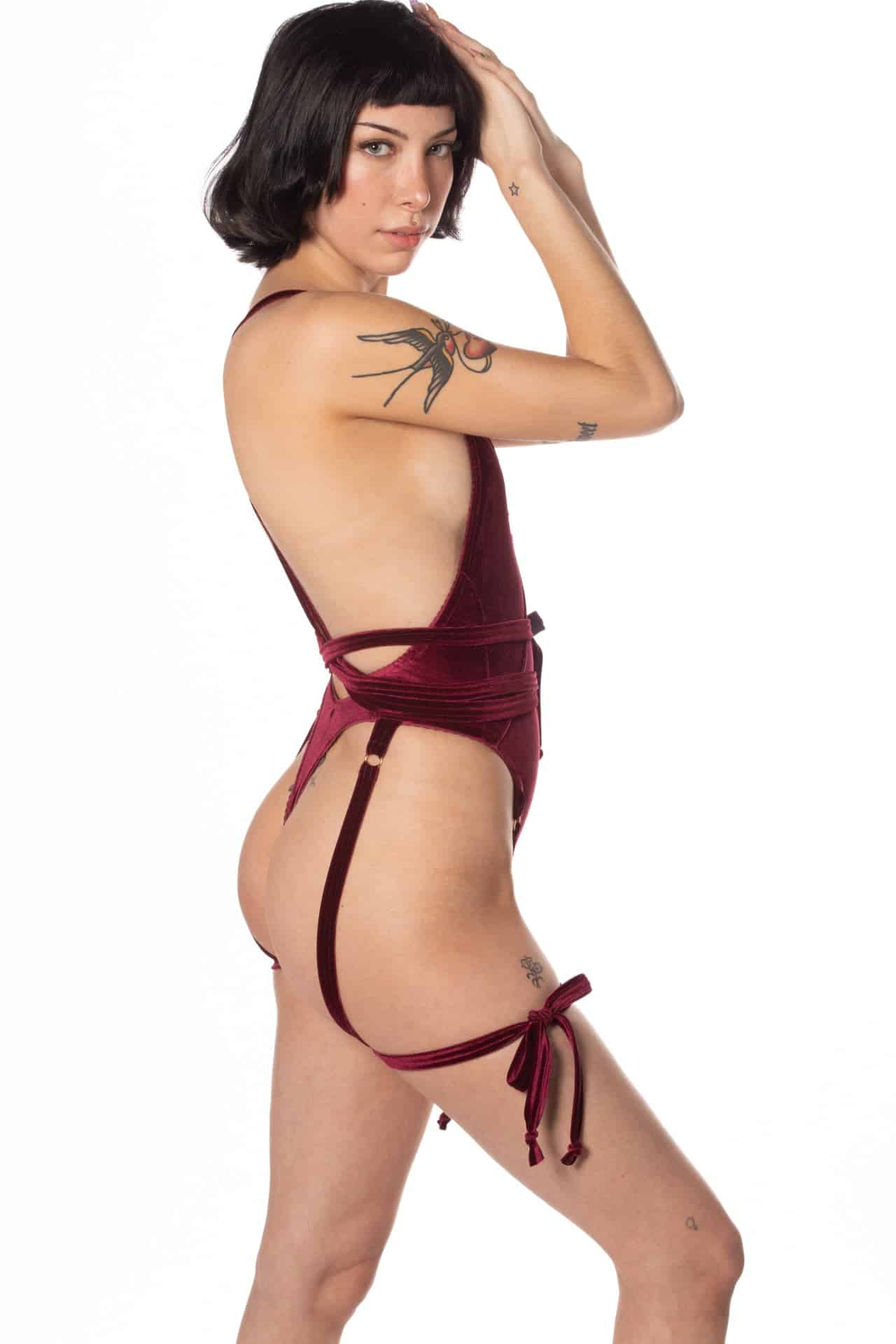 Velvet Pirouette Deep V Harness Thong Bodysuit