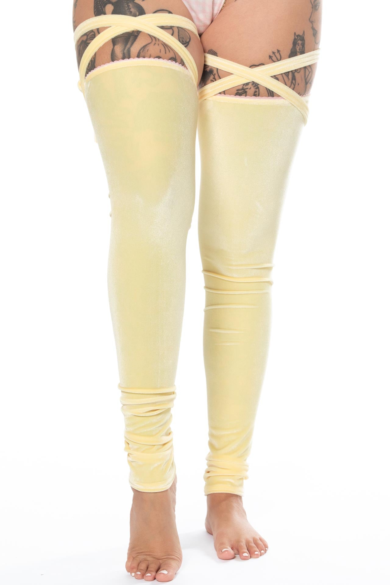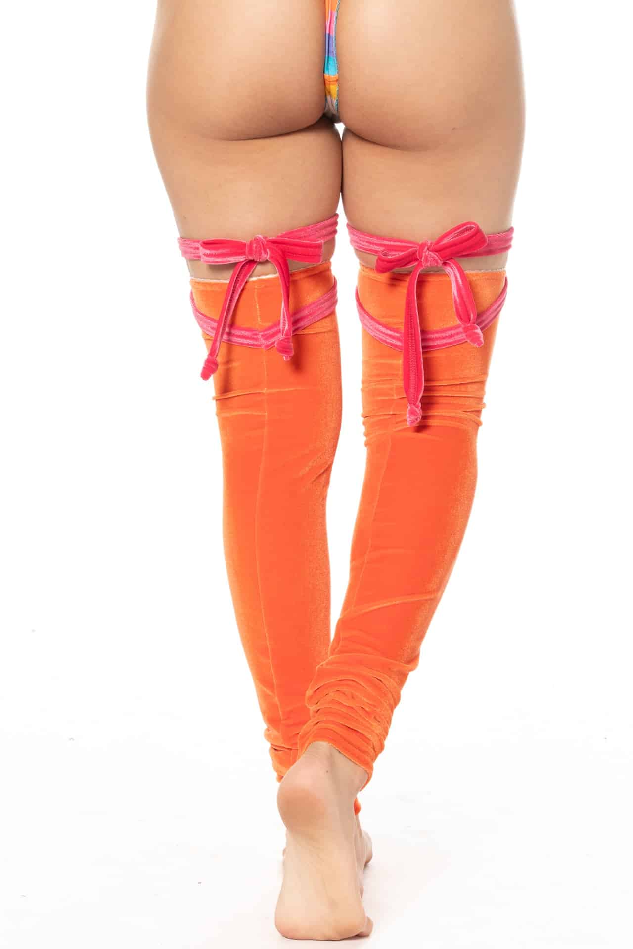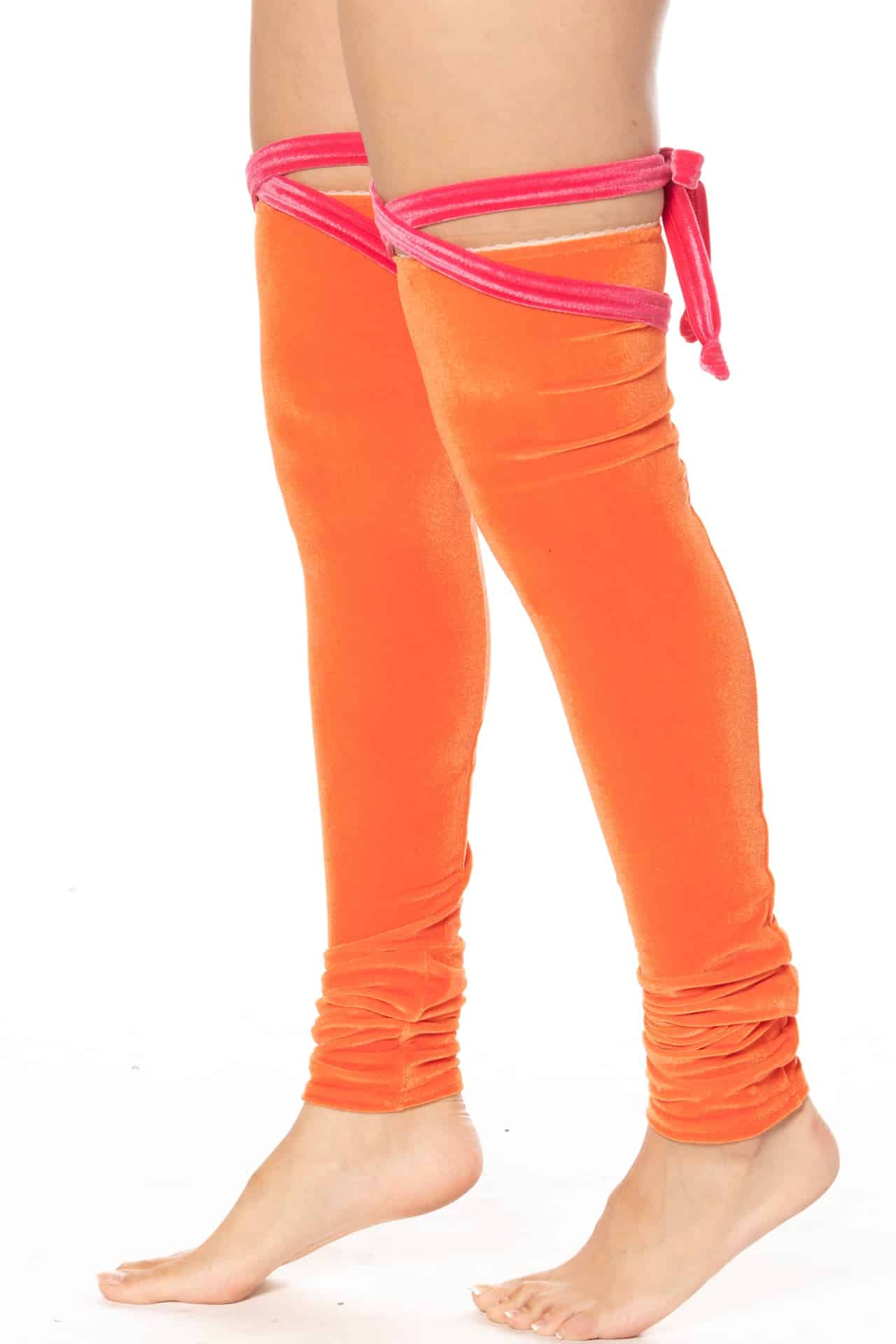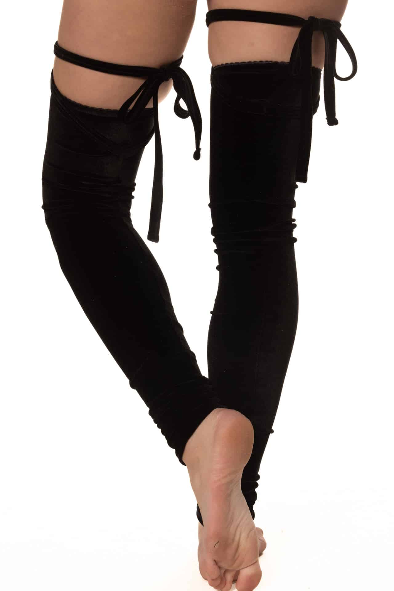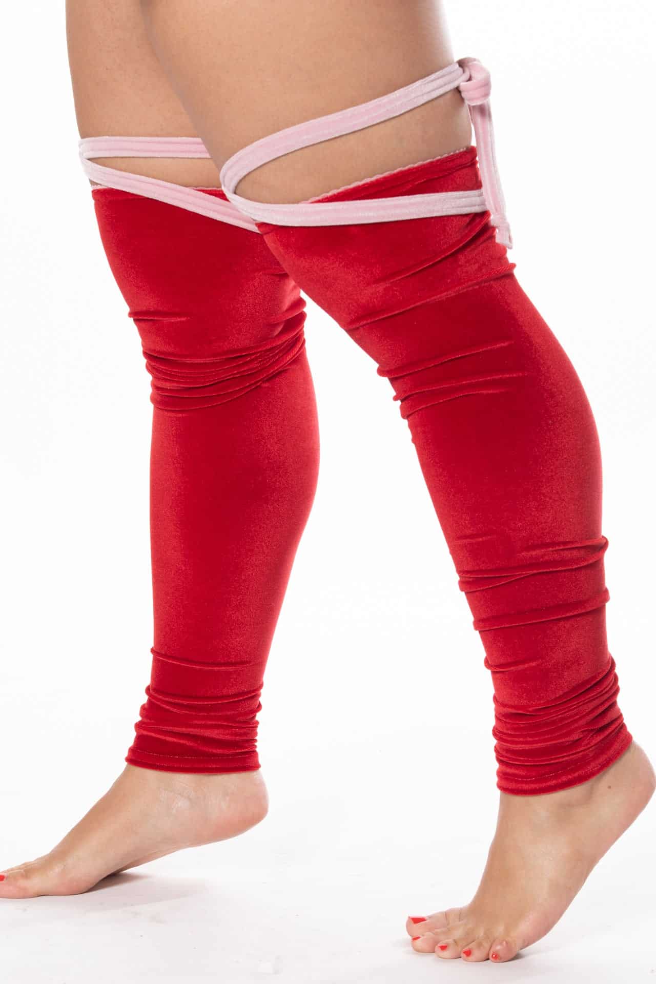 These are so comfortable and the velvet is buttery soft and feels amazing. And the color is absolutely stunning!!! The fit is snug on my legs but they stay in place very well while I dance! The ties are so cute. They do shed glitter but it’s not terrible.