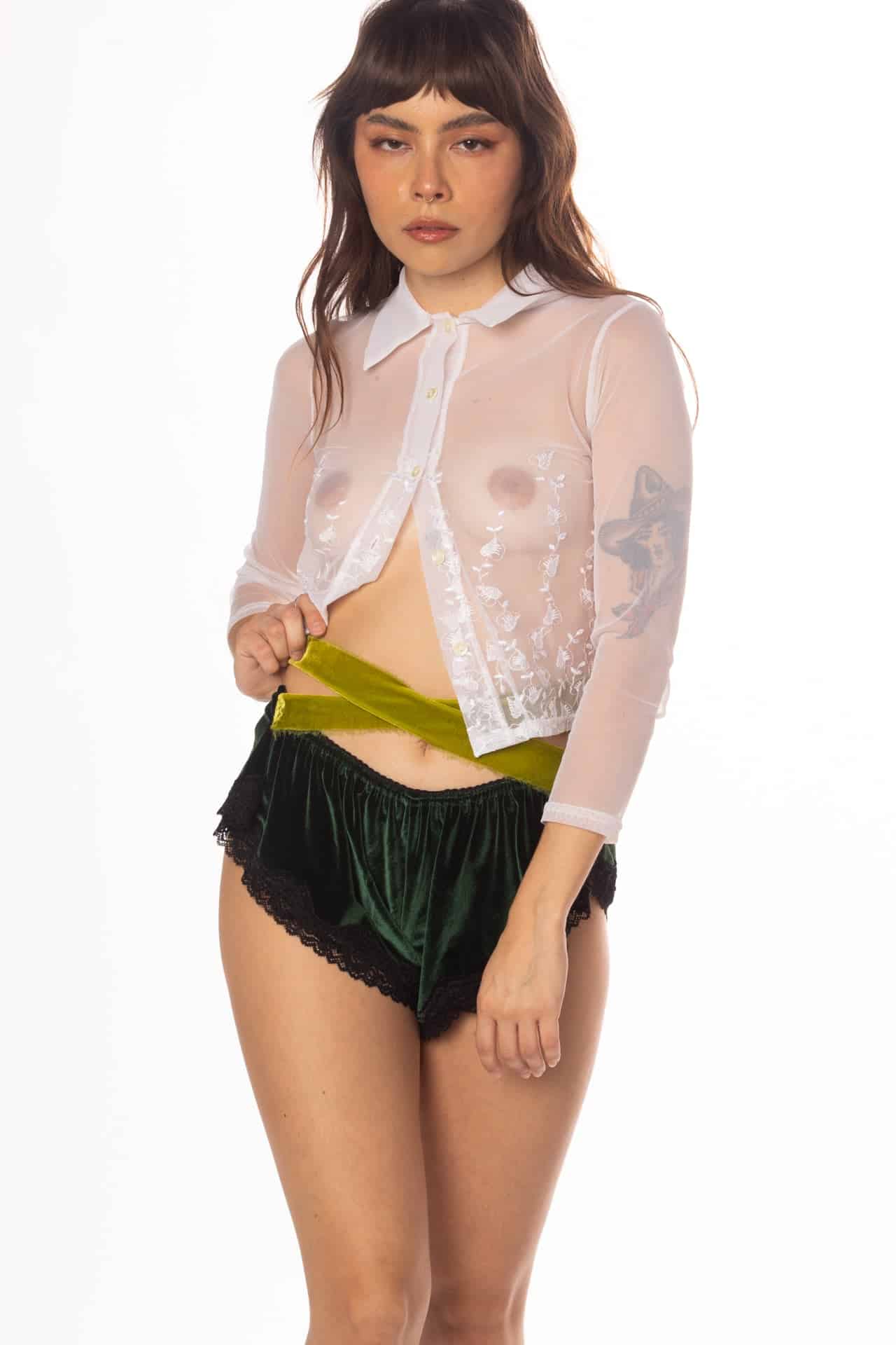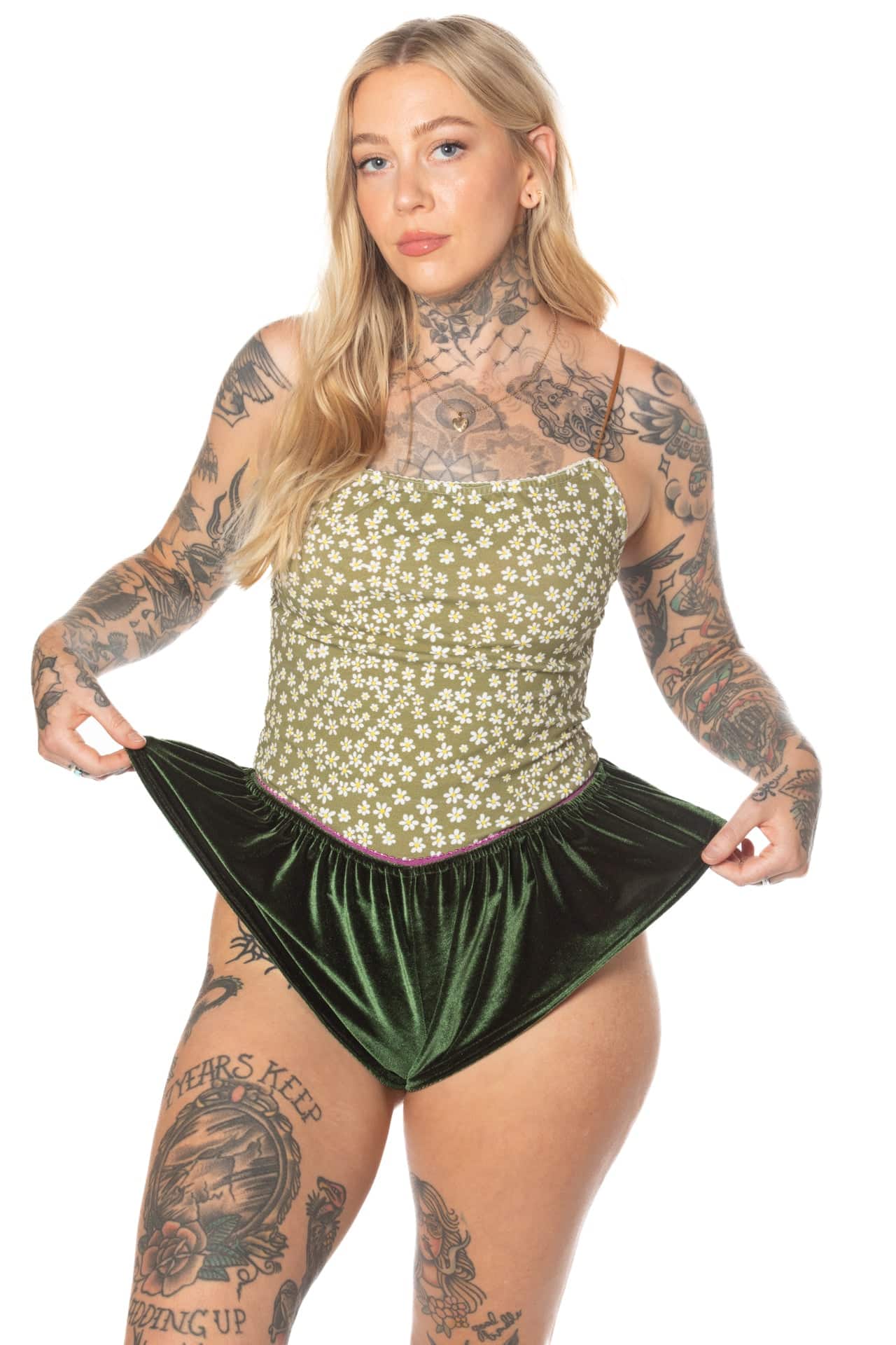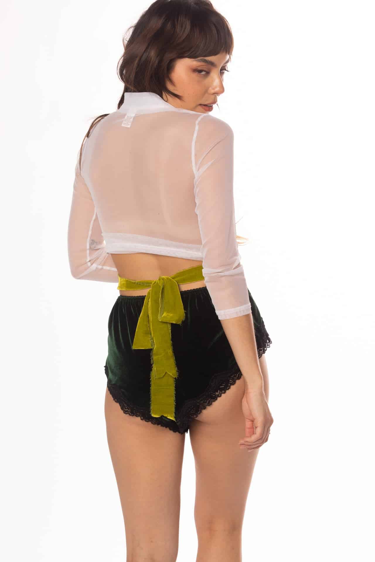 Opt for a blend of flirty and flowy with these high-cut cinched shorts in our softest solid and printed velvet fabric. These shorties feature a scalloped waistband for added style.