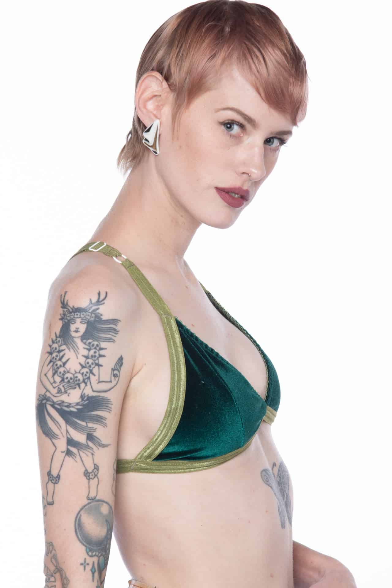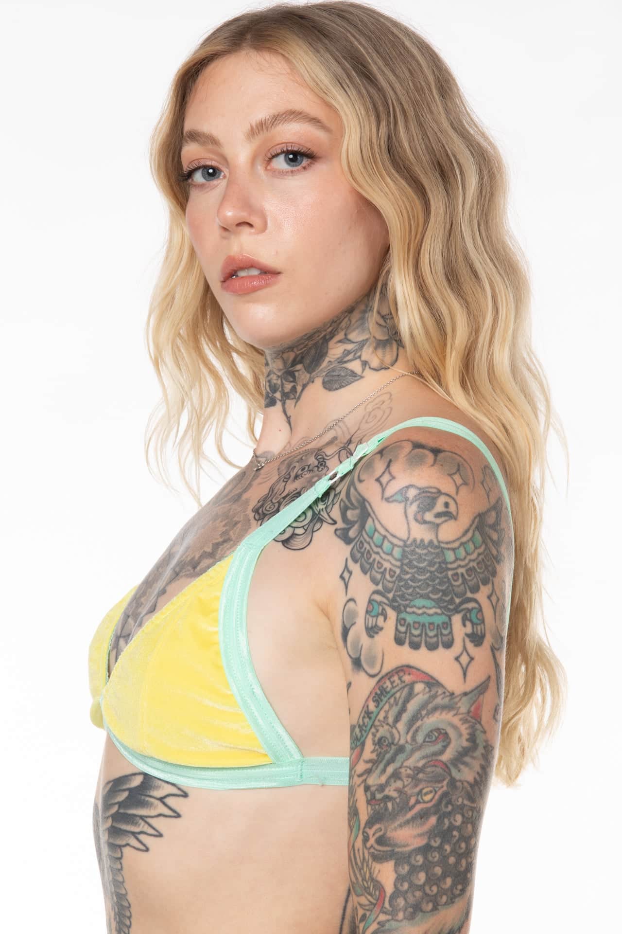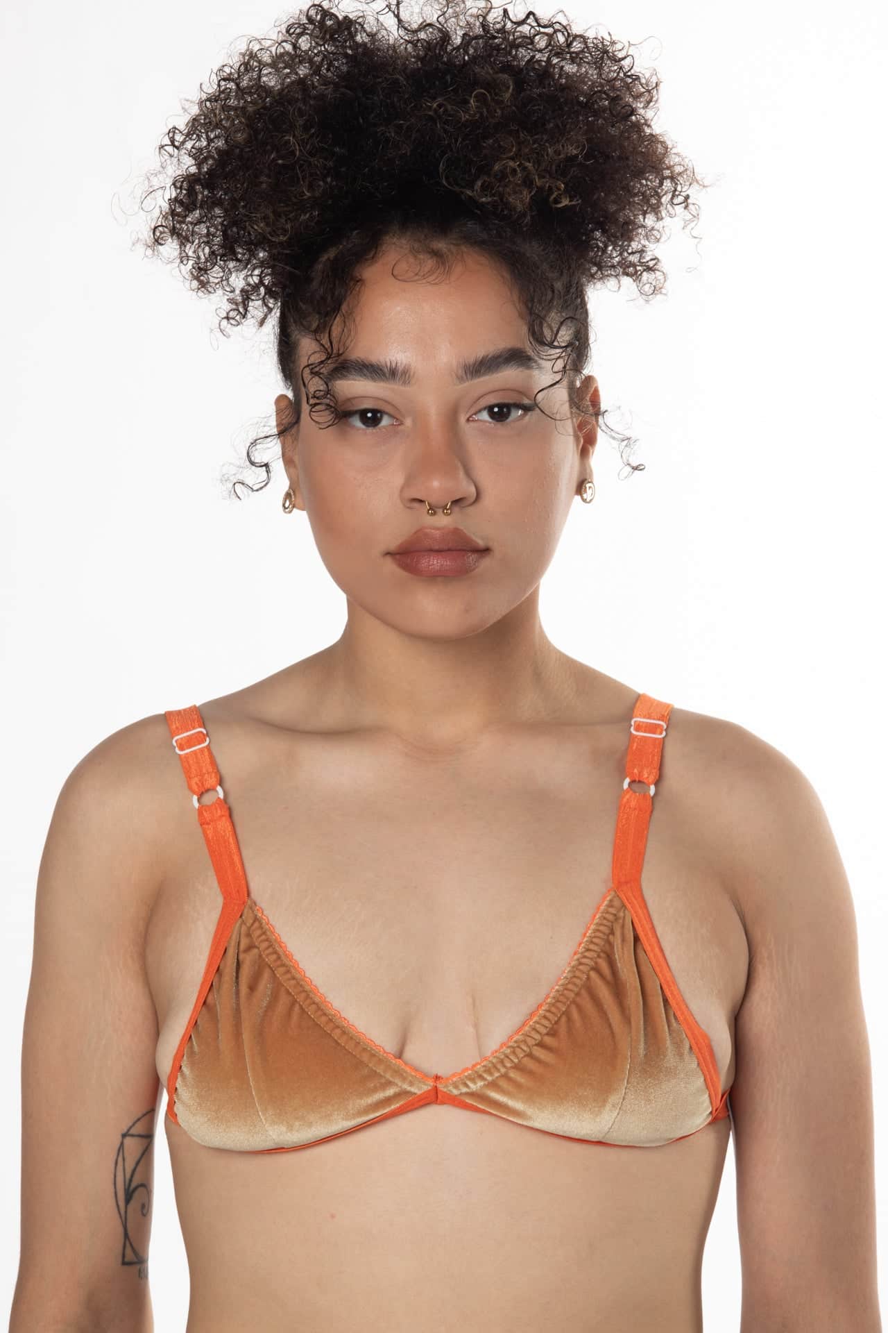 The bralette features a triangle cup made of our softest solid and printed stretch velvet, complete with a mesh lining for natural support. Additionally, the bralette includes fully adjustable shoulder and back straps to provide ultimate comfort and fit.