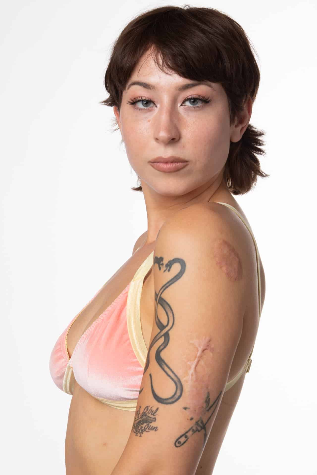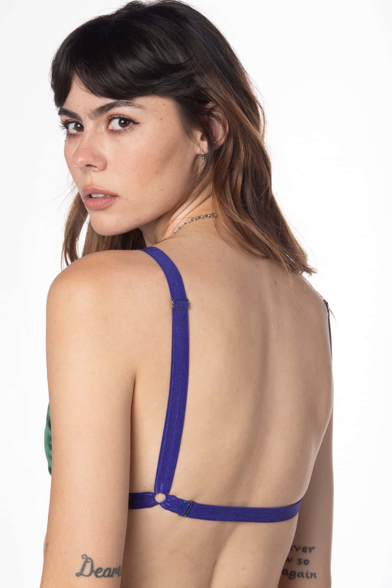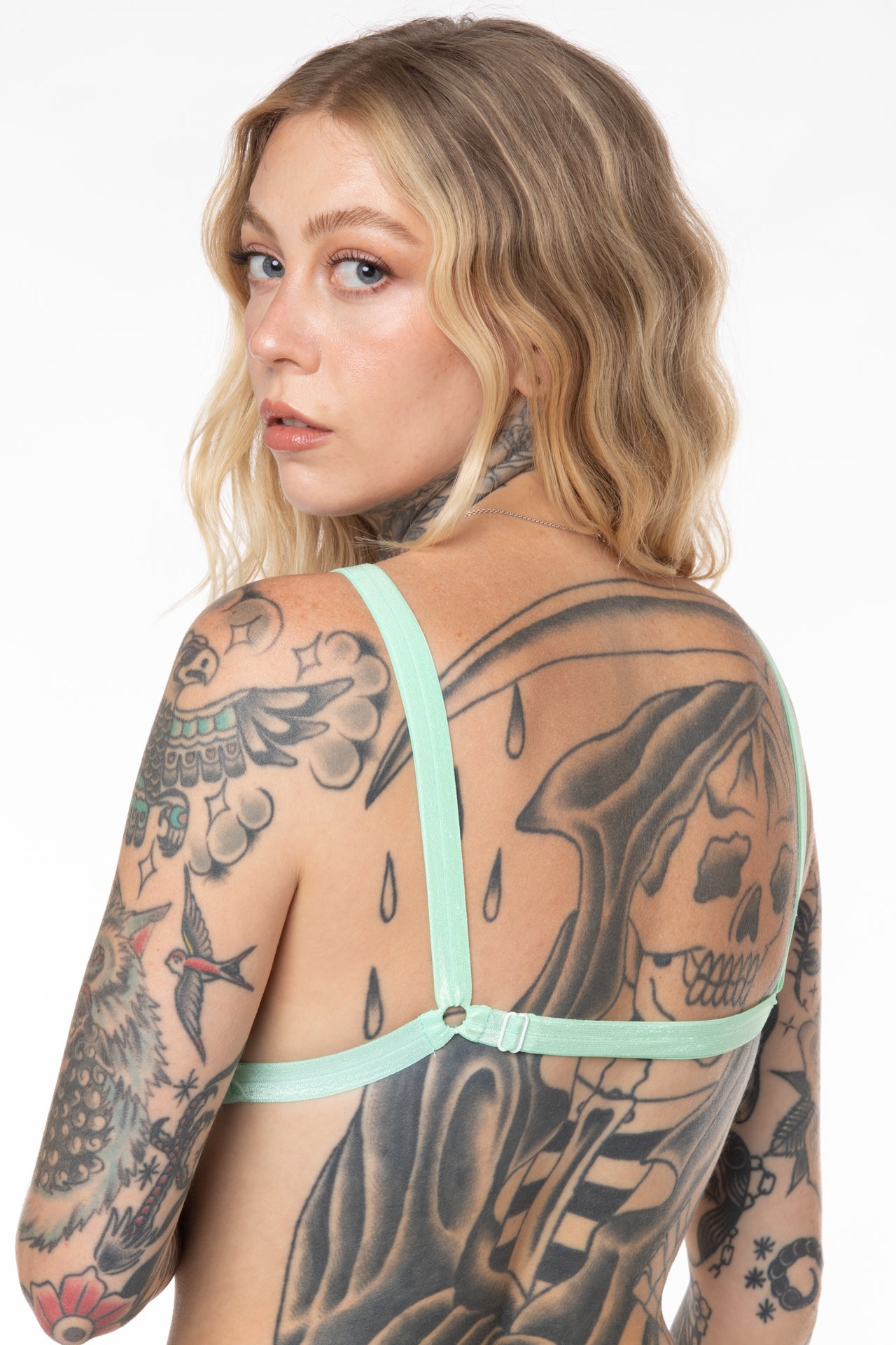 The bralette features a triangle cup made of our softest solid and printed stretch velvet, complete with a mesh lining for natural support. Additionally, the bralette includes fully adjustable shoulder and back straps to provide ultimate comfort and fit.